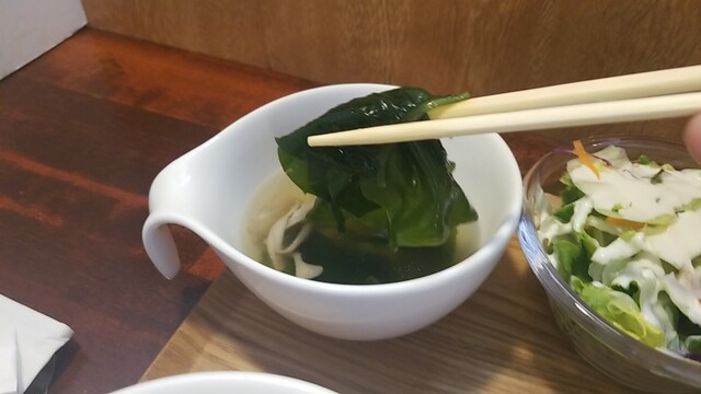 具沢山なスープも嬉しい、再びご飯、サラダを乗せる、茄子も美味いね。