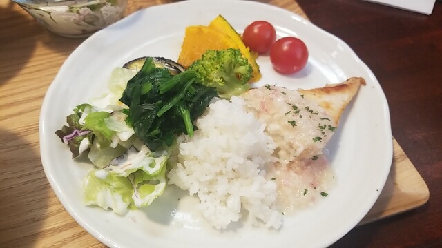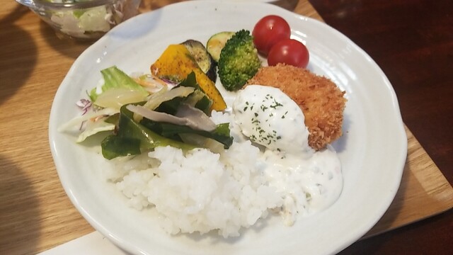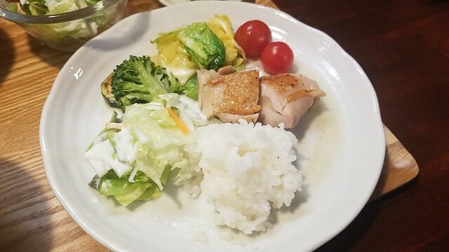 ご飯、サラダをのせてワンプレート