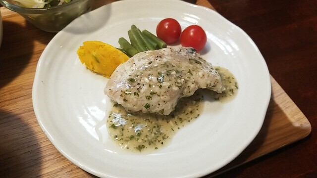 いんげん豆は軽く油揚げ、ゴマ和えではない、ピカタは好みである。