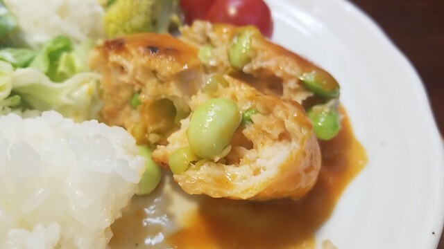 枝豆タップリなハンバーグ