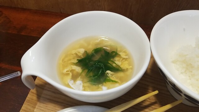 玉子タップリなスープ、食べ終わると直ぐに店主がトレイを下げて、