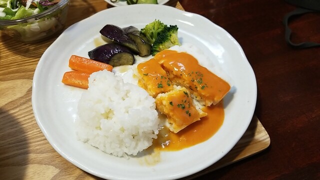ご飯、サラダ乗せ