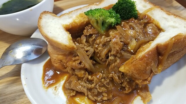 ビーフシチューとグラハムロールパン、ご飯はサービス、いつもありがとうございます!