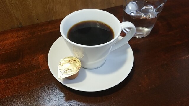 店主が冷たんを運び、ランチ大盛りとコーヒーを注文。