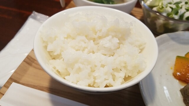 ご飯、サラダのアップ