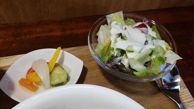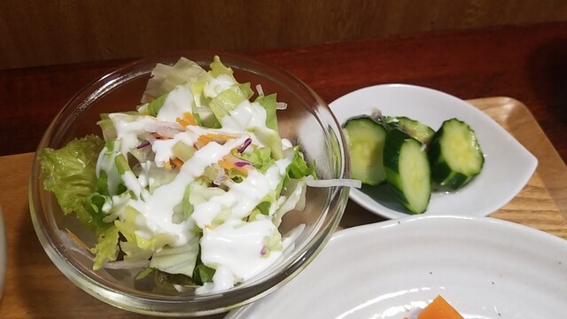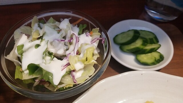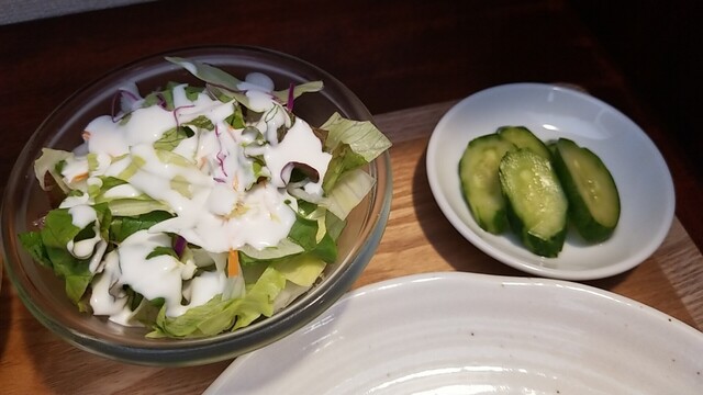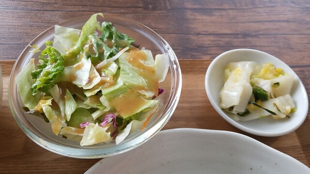 カブのお新香、昔食べたカブの味がする、サラダもいつも通りに美味い。