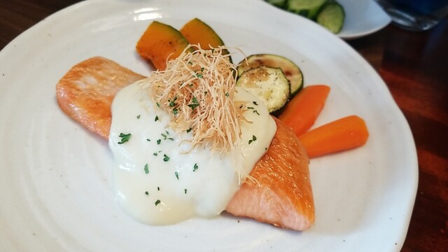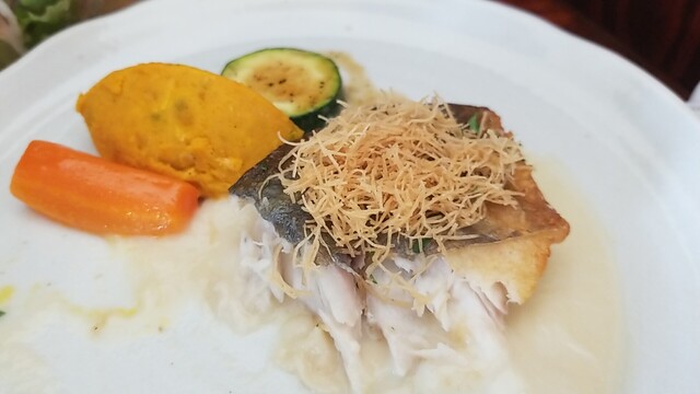 今日は銀鮭ムニエル マスカルポーネと春キャベツのブルーテソースである。