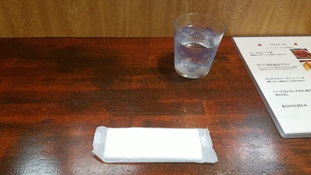 中を覗くと、入口席のテーブルを拭き取る奥さん。