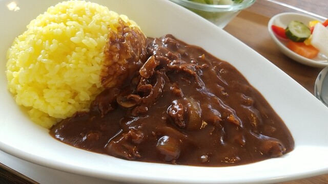ランチ大盛りコーヒーを注文、ビーフデミカレー サフランライス添え。