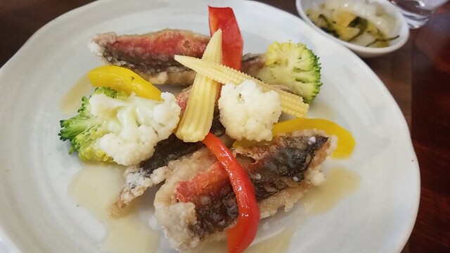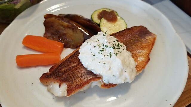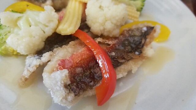 今日はタカサゴのフリットと蒸し野菜 ローズマリー香るレモンバターソースである。