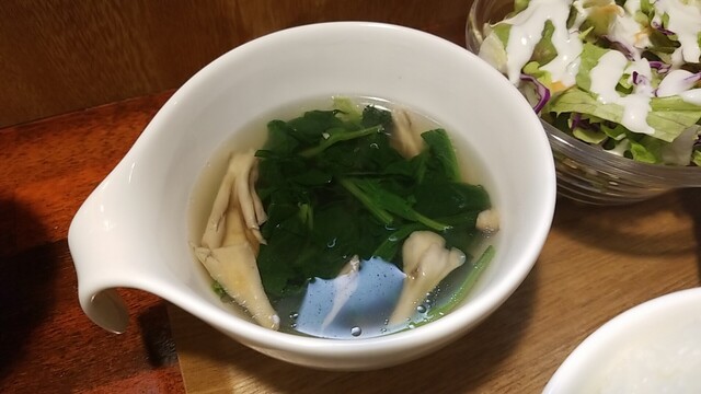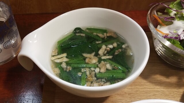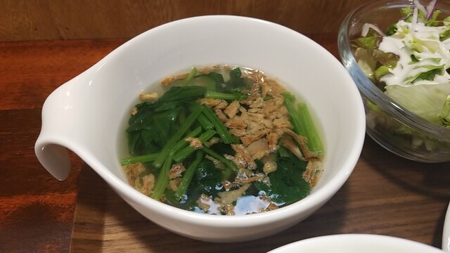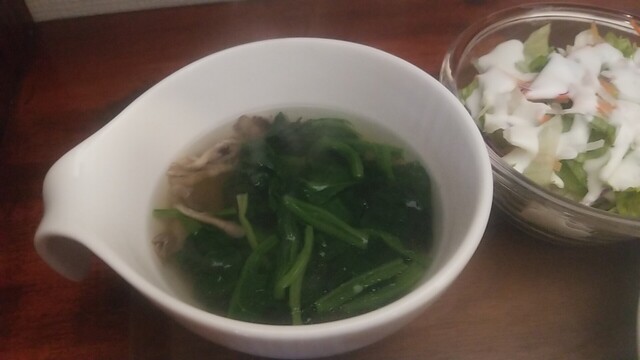 ほうれん草のスープ、サラダ、共に何時も通りに美味い。
