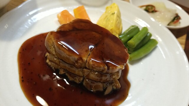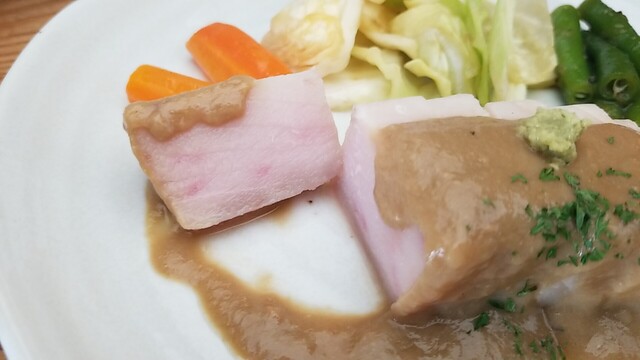 肉の固まりなポシェ、肉は柔らかく、とろとろ、かなり甘めのソース。