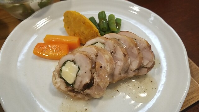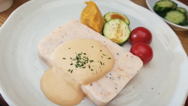 鶏肉とチーズのテリーヌ、マスカルポーネ仕立カポナータ添え