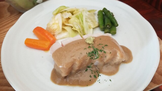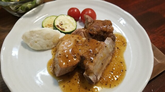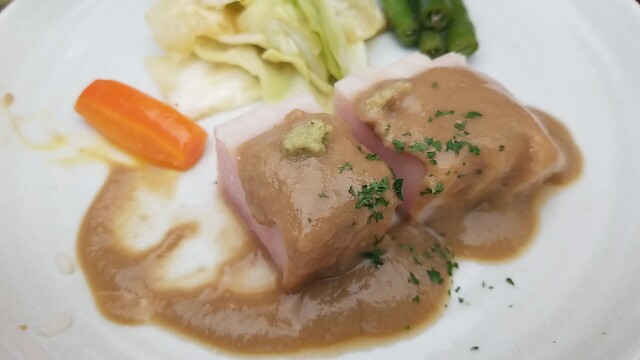 豚肩ロースポシェ カルーアと黒胡椒ソース