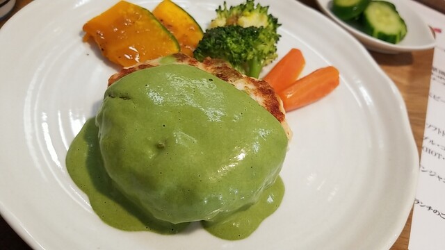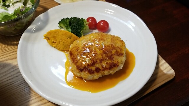 鶏肉と長芋のハンバーグ、サバイヨンソース