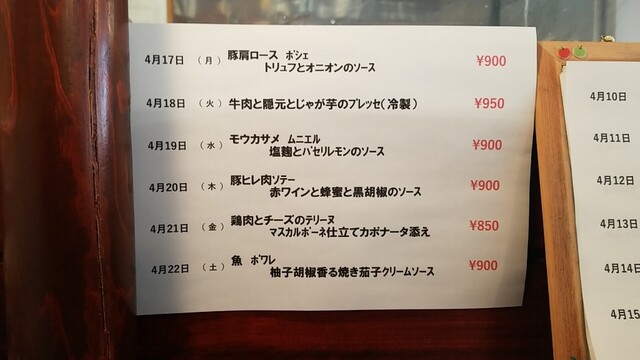 今日は客が引くのが早い、週末だから?、横の席に夜のメニューを見つける!