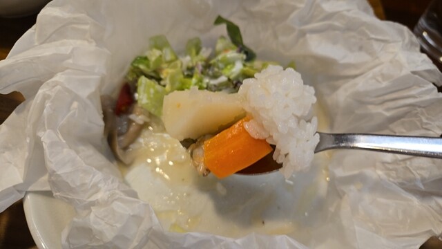 スプーンであさり、野菜、スープが美味い