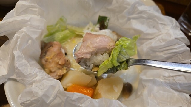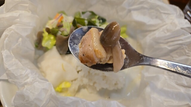 ここでワンプレート、柔らかチキン、スープを吸ったご飯が美味いね。