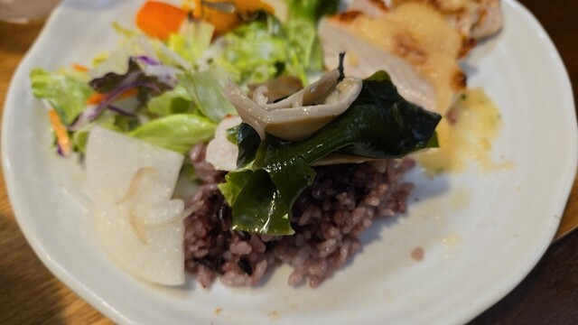チキンにワカメを乗せて