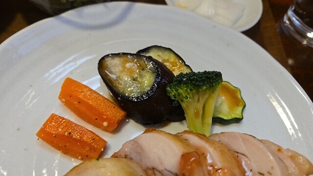 次は少し大きいプロック、茄子を添えると少し味変、ローストビーフソース味となる。