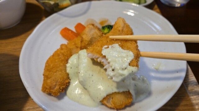 正面から、真ん中のフライにタップリなソース