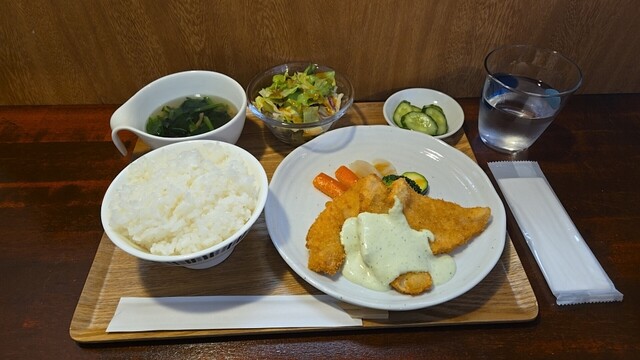 唐揚げを揚げる音、ランチは?、すると突然、料理が運ばれる。