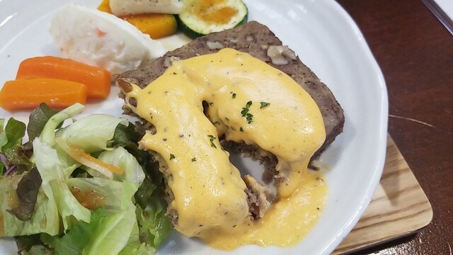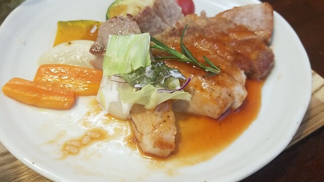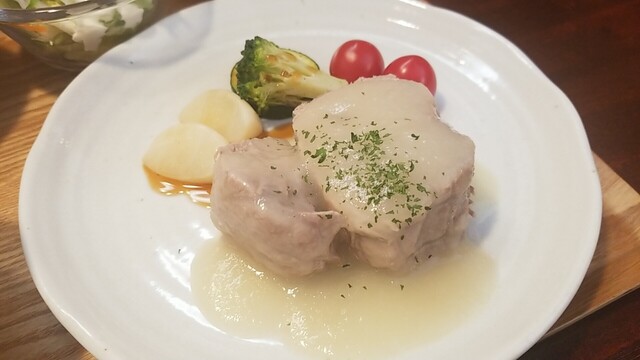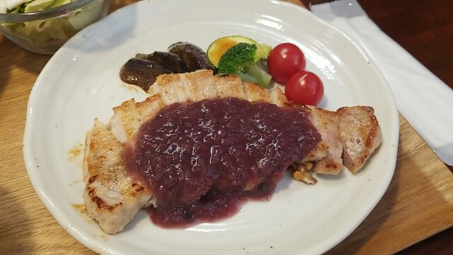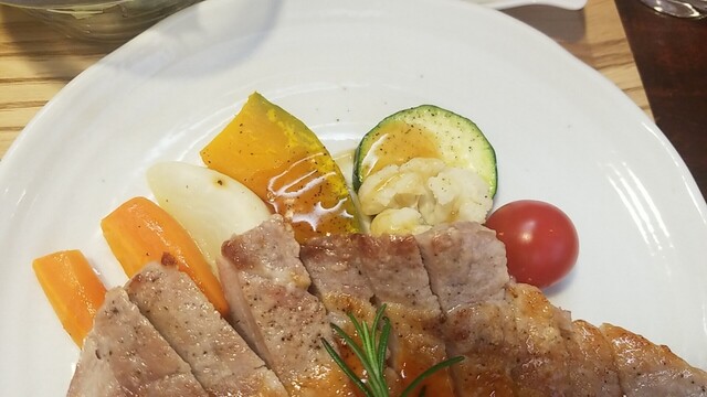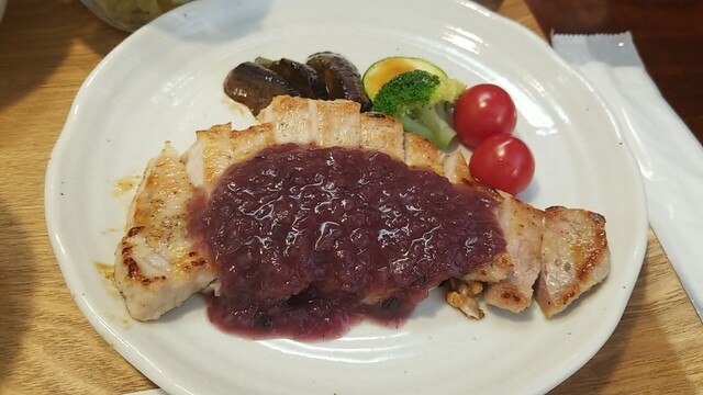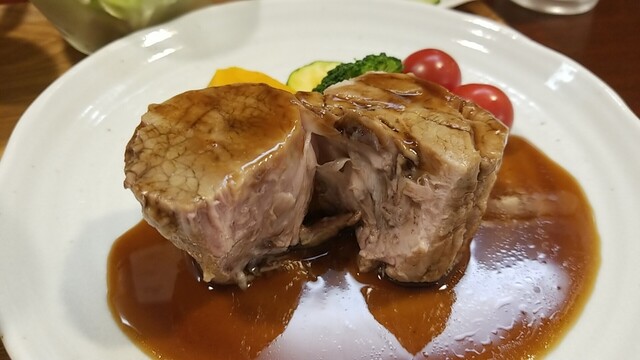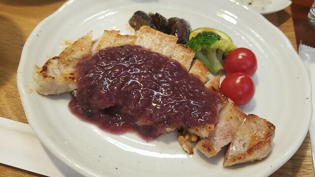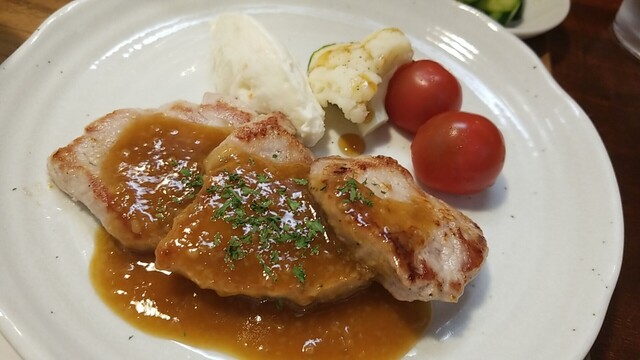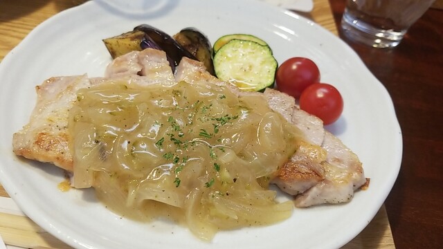 豚肩ロースポシェ すりおろしオニオンとりんご酢のソースは、後味がリンゴでした