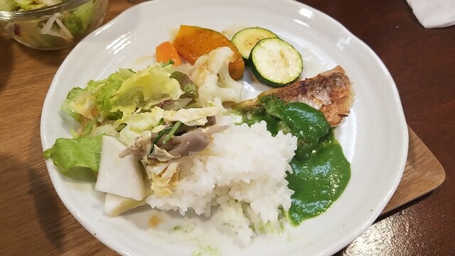 今日は鮭から抜けられない、最初はソースの酸味が強いと感じたが、もっと強いと良いかな?