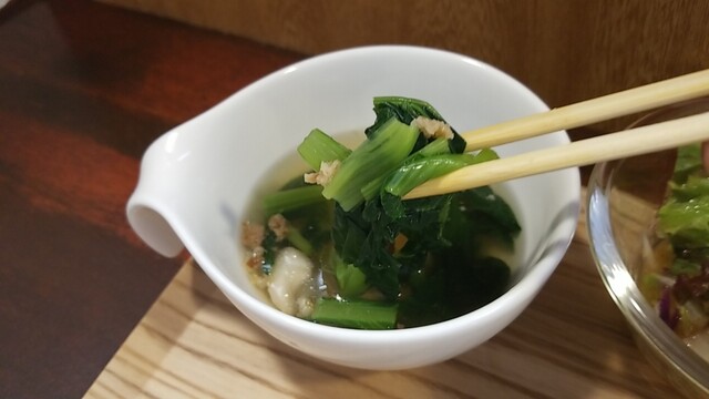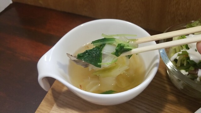 具材の多いスープ、ほうれん草はタップリ!移すか?