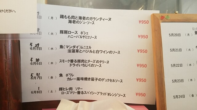 肝心の料理は、全てマスターの拘りメニュー、特に日々変わる料理とソースが決め手、日替わりランチが、とても美味いです。