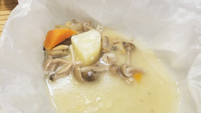 最後のワンプレートには、スープの具材も乗せます