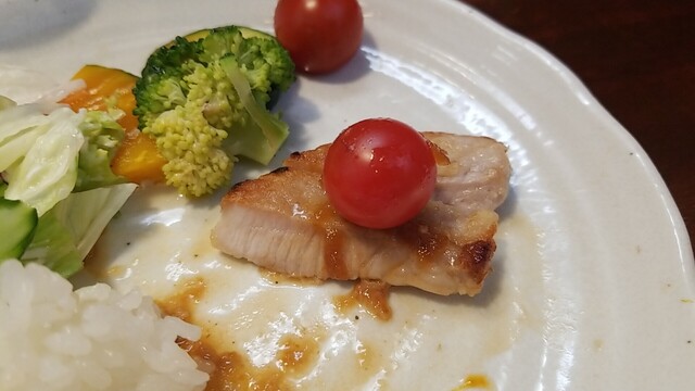 3切れ目、醤油ベースの味かな?、塩麹も含むかな?、ご飯が足らない。