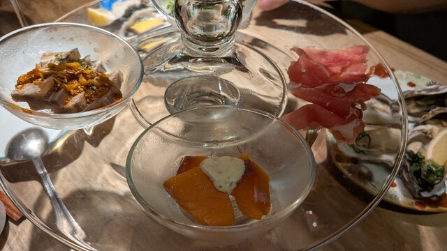 ・2vin vin(ハマチ、タイのカルパッチョと前菜4種盛り)