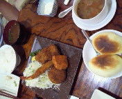 ここのお店はごはんorパン、お味噌汁orスープ、キャベツもすべておかわりし放題。