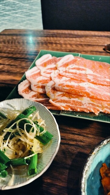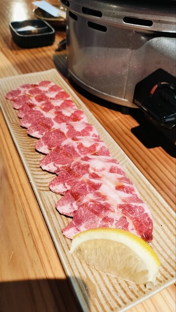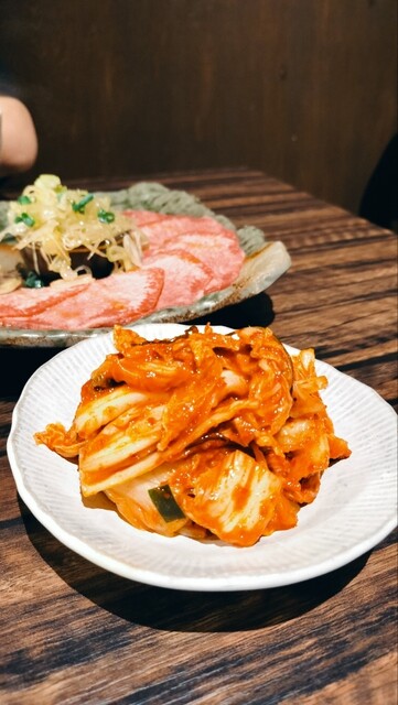 いつもは空腹で行きあれもこれも頼んでしまうので今回は冷静にネギ塩タン、ハラミ、豚の薄切り、塩ホルモン、カルビ、大ライス、キムチにドリンクにしました