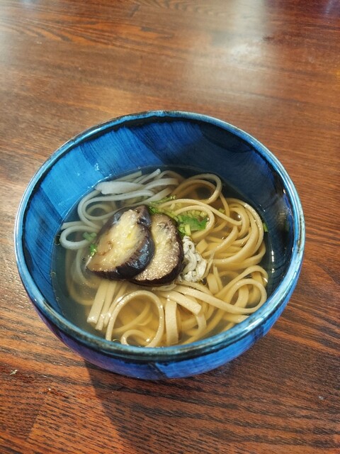 平麺のそばは温かい汁の中でも歯応えがあって、でもしなやかで食べやすいです。