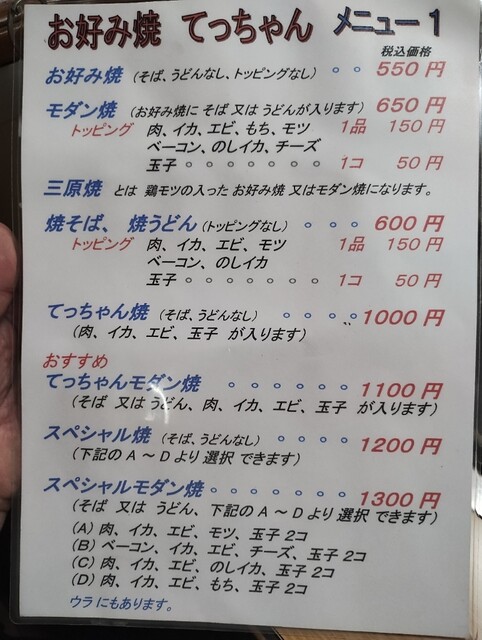 スペシャルモダン焼きのA(1300円)を予約時に注文。