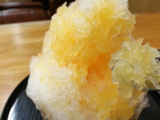 とりあえずさっぱりした味がよかったのでかき氷マンゴー350円を注文。個人的には昔ながらのザリザリ感の氷と今風の白いふわふわ感の氷のちょうど中間あたりだと思いました。自分はこの食感すごく好みでした。