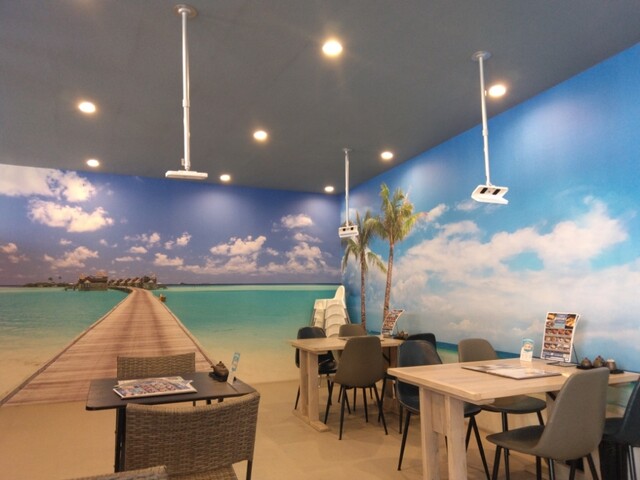 店内は和風ではなく南国風のコンセプトで最初は違和感がありましたが、楽しく撮影できる映えスペースや天井にはスマホで上から写真も撮れるようスタンドが設置されていて、今時のニーズに見事に応えてるなぁと驚きました。