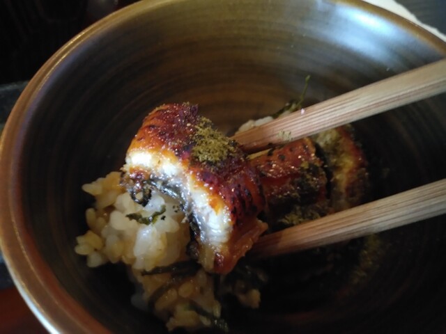 全体的にふっくら香ばしくて素晴らしく美味しいです。そして思ったより鰻の量があったのでご飯大盛りで追加注文すればよかったな(>_<)