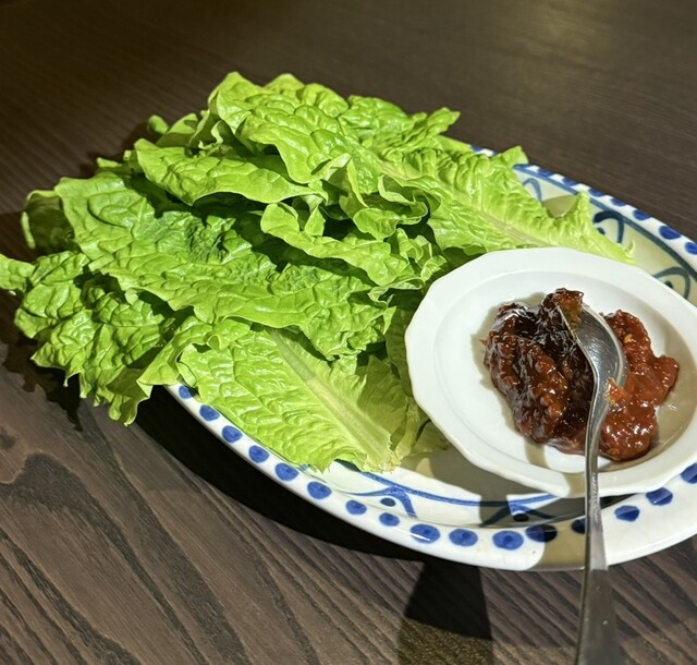 黒毛和牛ハラミ、少しパサパサ感ありましたが、とても旨味が濃厚で美味しかったです、こちらもサンチュと合います