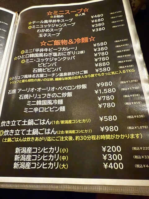 メニューを見るとバルのようなメニューもあり焼肉だけでなく、バルとしても使えそうなお店です。