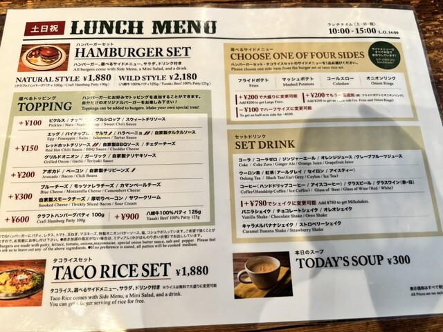 ナチュラルスタイルのハンバーガーセットを注文(¥1,880)