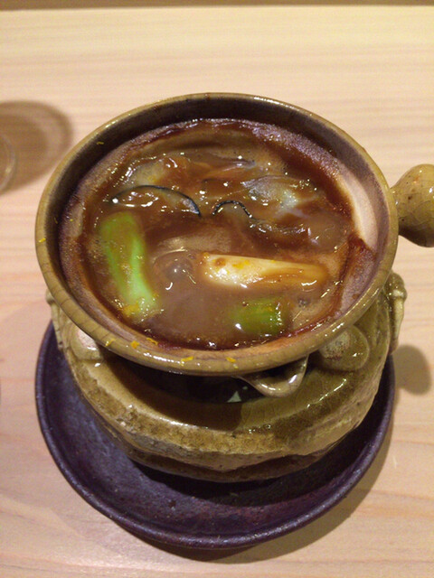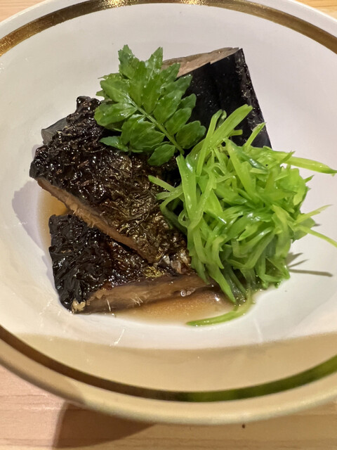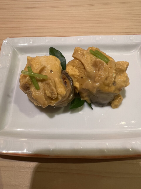 鮑は芳醇な旨みが凝縮されており噛むたびに鮑のエキスが胡麻の香りと共に口腔内に拡がります。食感も良いですね。鮑に触れる最初の歯の感触はもちっとしていますがぷつっと弾けてからすっと自然に歯が中に入っていきます。いやあ、本当に毎回幸せになりますね。