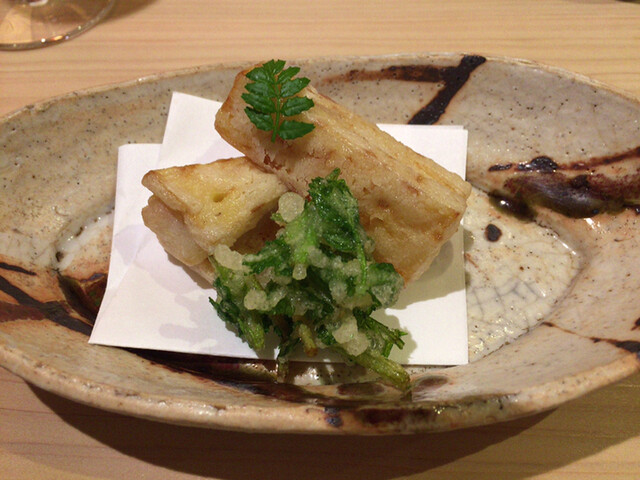 • [揚げ物] 鹿児島産 筍のぐし挟み揚げ、芹