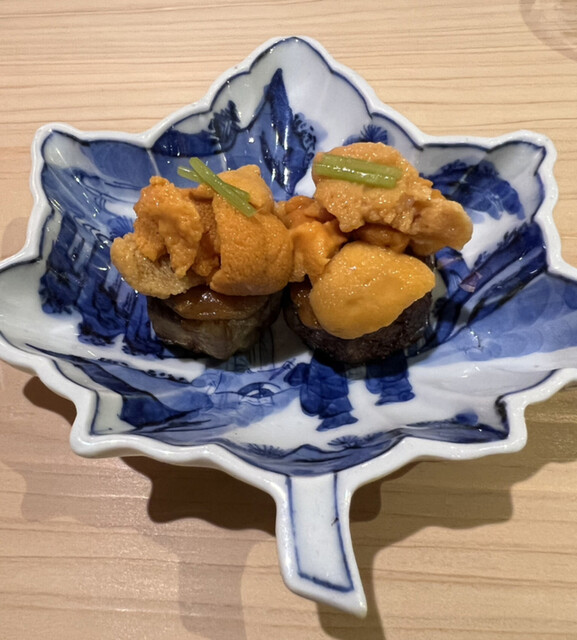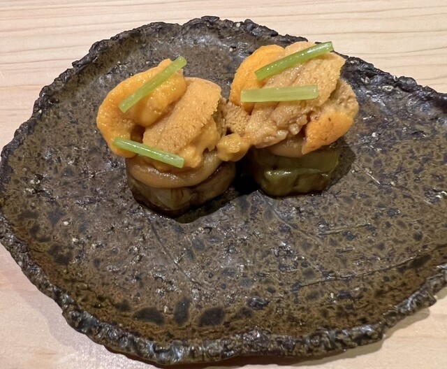 ・ 蕨、穴子寿司、鴨ロース、フォアグラ赤酒漬け