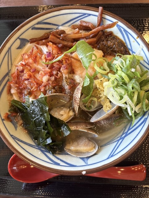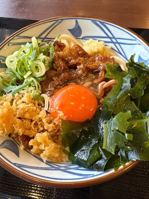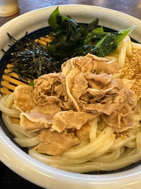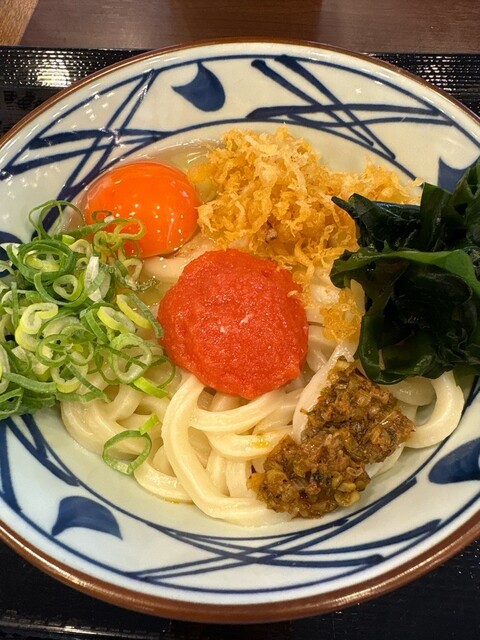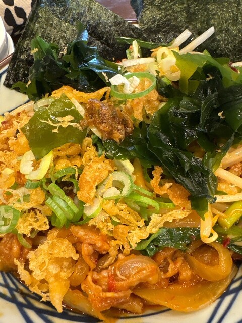 天かすとネギはうどんに、しび辛ラー油・わかめ・細切りメンマ(期間限定)は別皿によそって後から入れて楽しみました♪