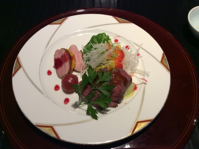 強肴-----牛炙り焼き、鴨肉低温ロースト