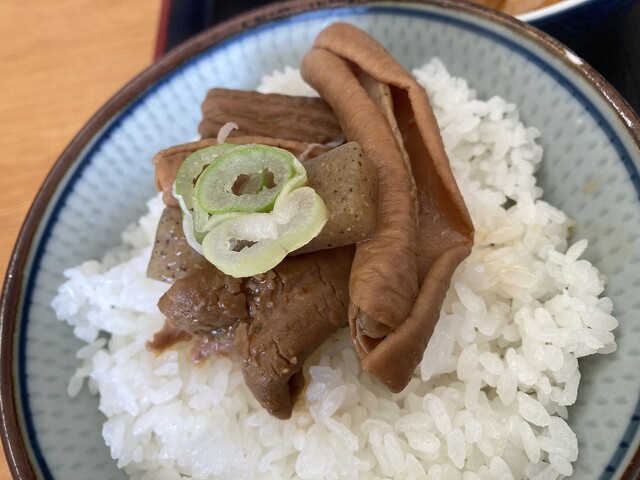 もつ煮は味噌のコクと旨味が素晴らしく、控えめな辛さがより食欲をそそります。