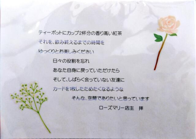 お客さんが作ってくれたというショップカード(表)